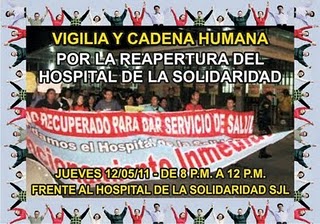 Te invitamos a participar en la VIGILIA Y CADENA HUMANA POR LA REAPERTURA DEL HOSPIPTAL DE LA SOLIDARIDAD,
